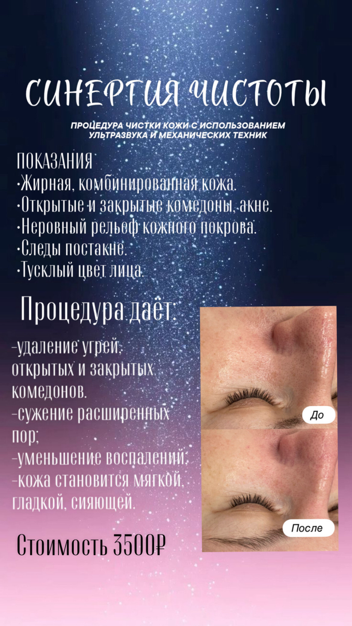 Комплектный подход за кожей лица, получите профессиональный уход, избавьтесь от черных точек и воспаленных элементов, получите ровный сияющий тон кожи. Предлагаю большой выбор пилингов.